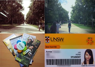 I went to UNSW (University of New South Wales) this morning with Zahav, Angela, Benson, Irene, Roger, Maria and Mabel to collect our UNSW student cards. Benson and Angela was late so Zahav and I headed to Gloria Jeans for some iced coffee (since it was superrrr hot) before meeting up at eddy avenue bus stop!When we arrived at UNSW, we had to walk a longgggg way up in the sun before reaching the office and was then redirected to the library. Once we entered the library, we were offered freebies by a guy and of course we took them! Inside were some pamphlets, a 2Gb USB and a cute highlighter wheely thing! (: